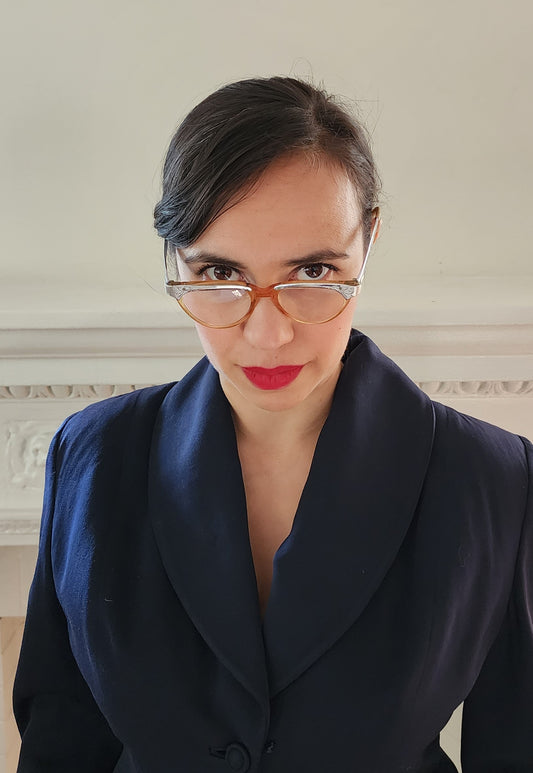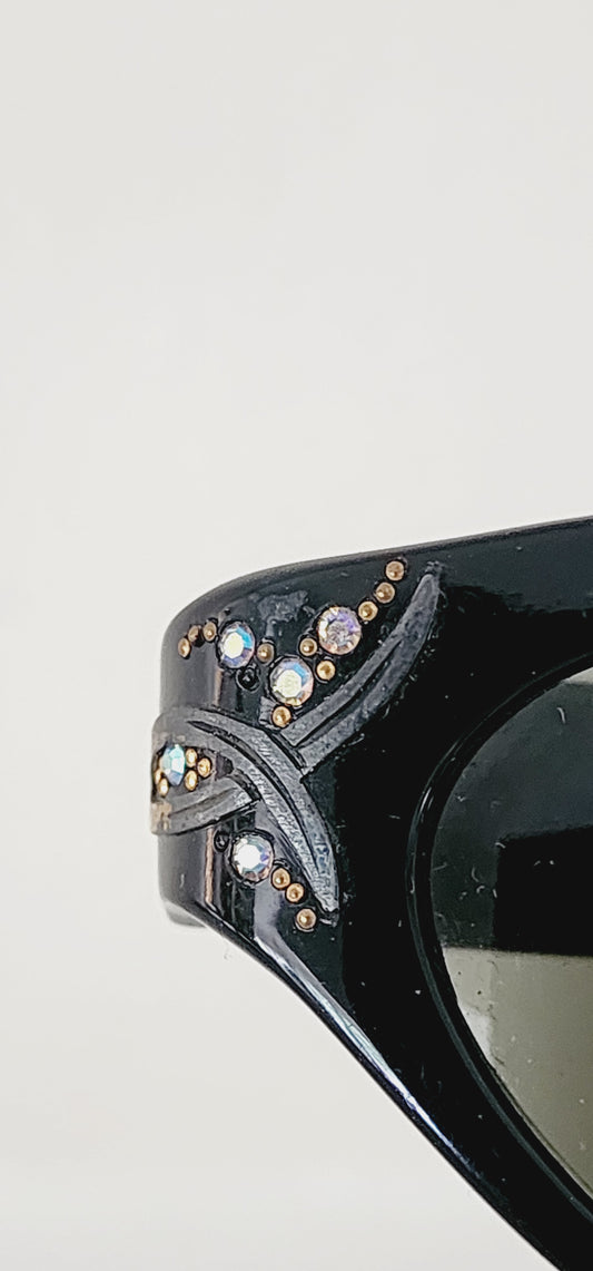 50s SWANK Cat Eye Glasses Black Rhinestone Frames Made in France