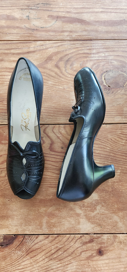 40s Black Pumps with Bows by Foot Saver 6 Narrow Deadstock