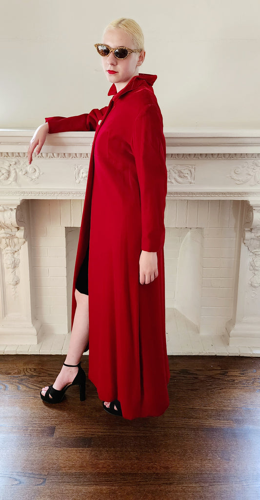 60s Red Velvet Evening Coat Rhinestone Buttons Bramson