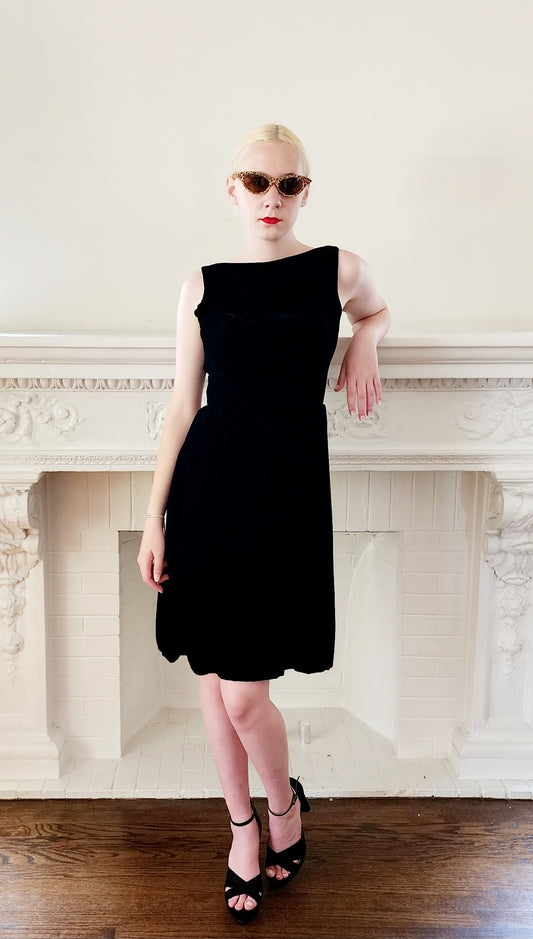 60s Black Velvet Party Dress Sleeveless by Kimie Small