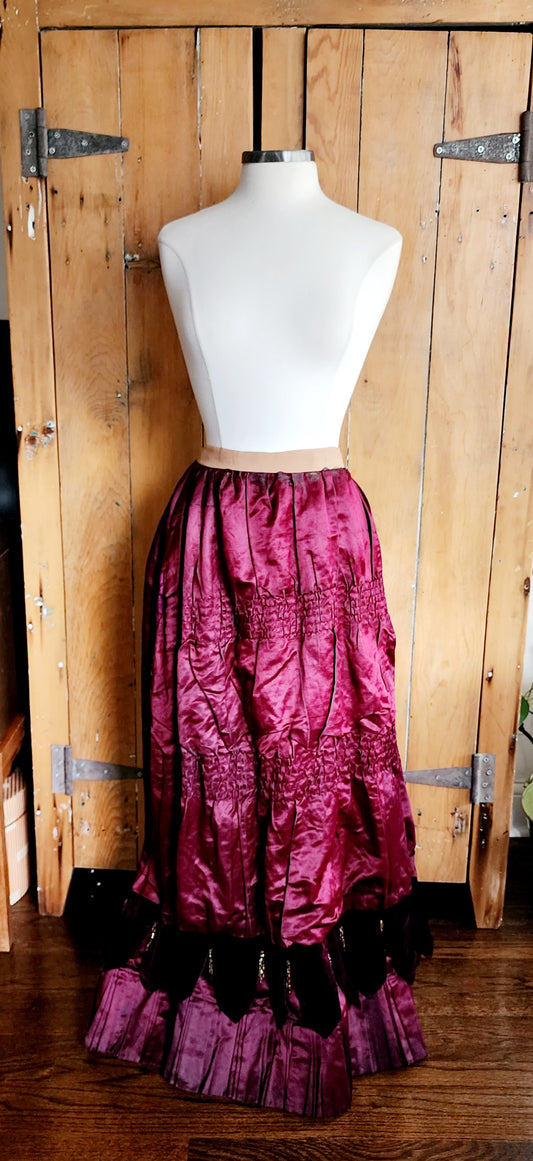 Edwardian Skirt in Burgundy Red Silk Velvet Bead Trim
