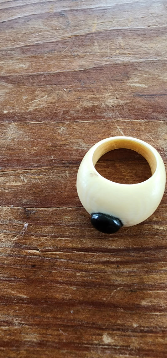 70s Cream Ring in Bone with Black Bead