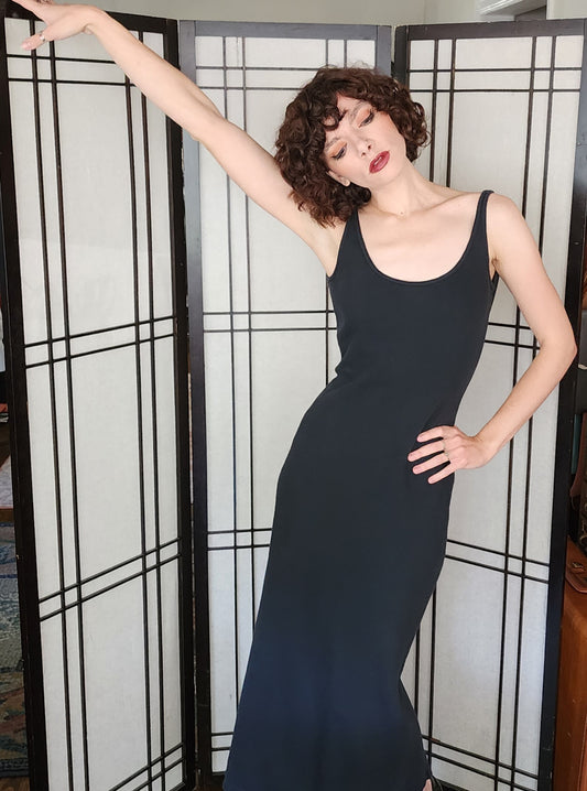 90s Isaac Mizrahi Dress Bodycon Long Black Sleeveless M