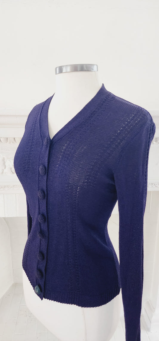 1930s Navy Blue Handknit Cardigan Sunday Night Knits by Marinette / S