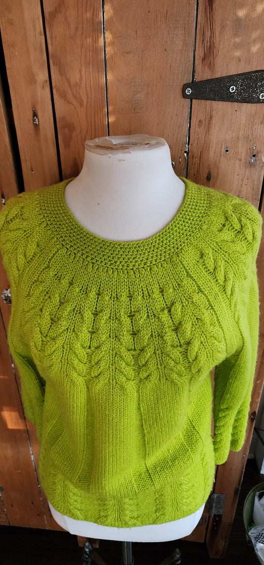 60s Lime Green Sweater Handknit by LeRoy Virgin Wool