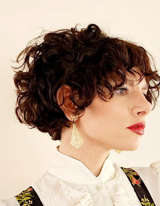 1940s Carved Bone Dangle Earrings in Cream / Sterling Screw on Clips