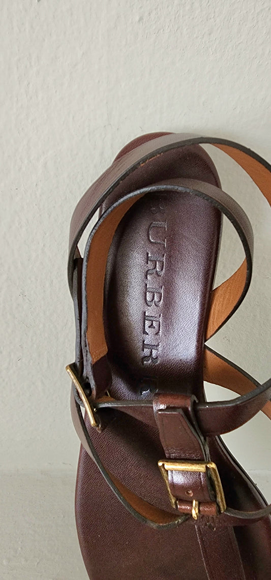 Burberry Brown Leather Sandals / Ankle Strap Thong Style Size 38
