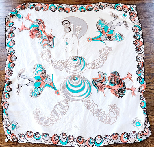 Pucci Silkprint Square Scarf 1950s Style Graphics of Carnival Figurines
