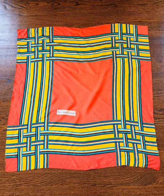 80s Yves Saint Laurent Vintage Orange Yellow Green Geometric Print Silk Scarf