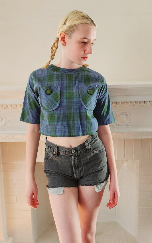 Blue Denim Cut off Shorts by Levis 501 Button Fly w/Light Wash / S