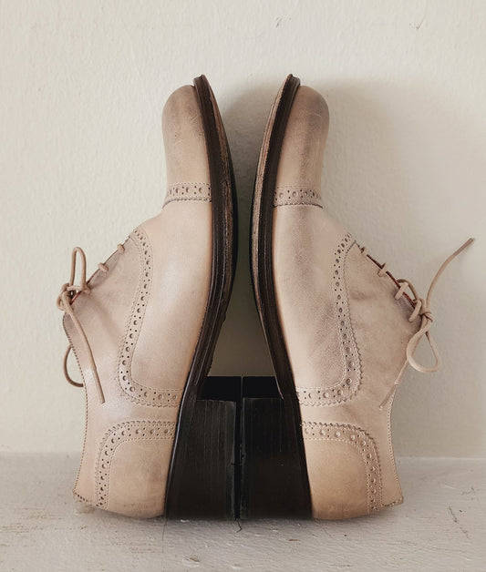 Cream Leather Lace-Up Oxfords Shoes by Alcala's / Womens 9
