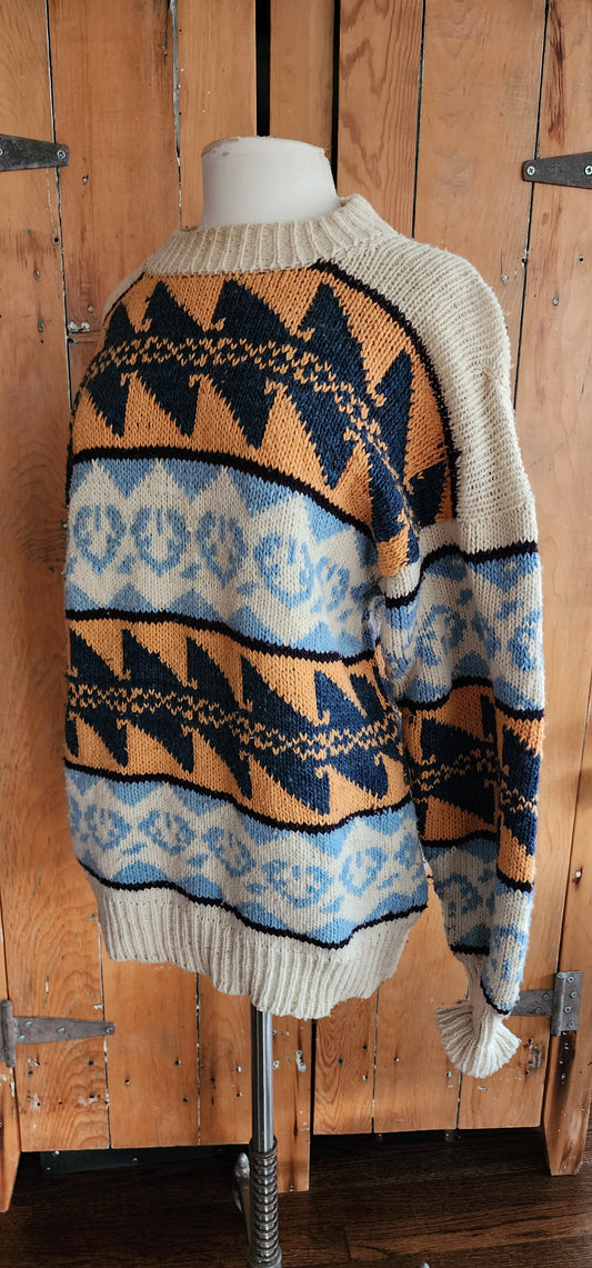 80s Wool Ski Sweater Cream Orange Blue Pattern Passports
