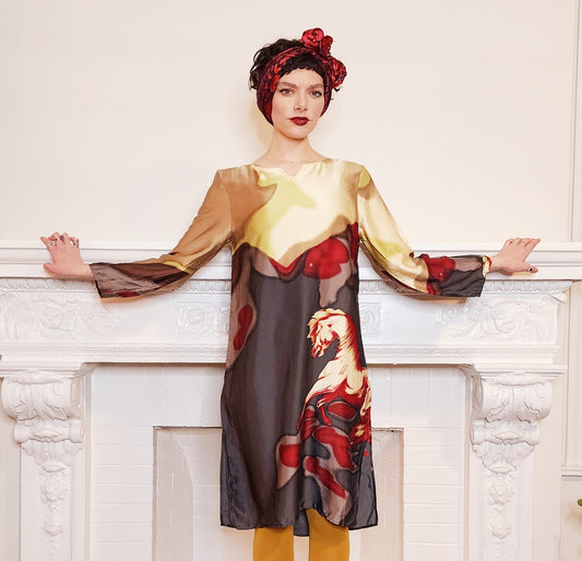 90s Silk Print Tunic Dress with Horse Print by Neiman Marcus