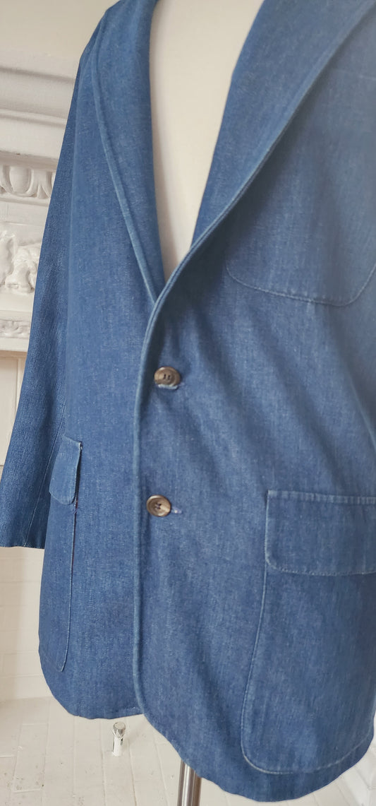 80s Blue Denim Blazer Oversized Jacket by Ralph Lauren / S