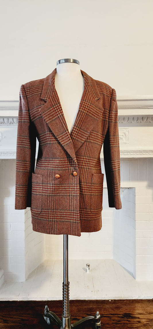 80s Brown Plaid Wool Blazer by Country Shop / S M