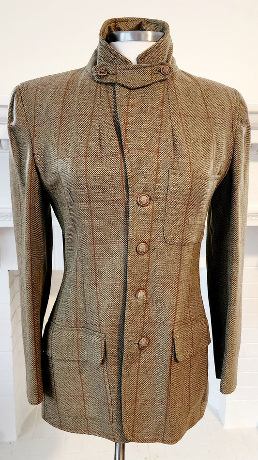 80s Wool Plaid Blazer in Brown Tones by Field Manor S/M