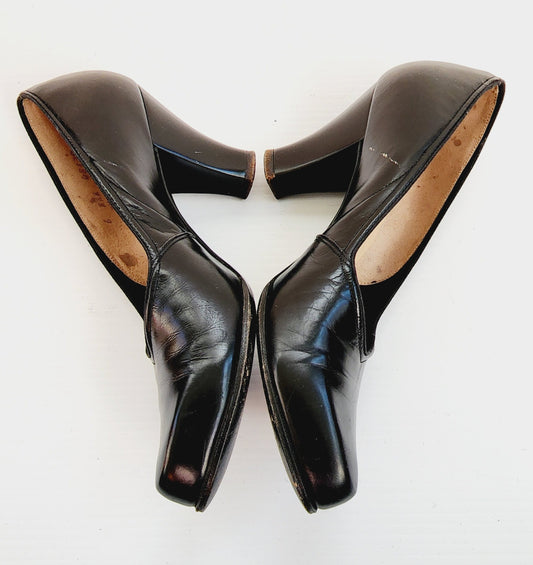 1930s Black High Heel Pumps Shiny Leather Classic by Naturalizer Size 6