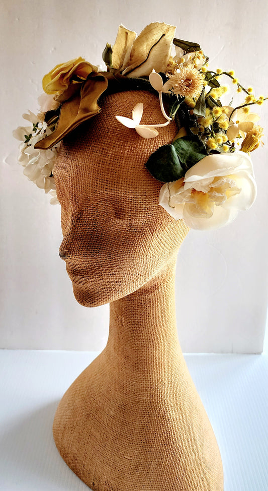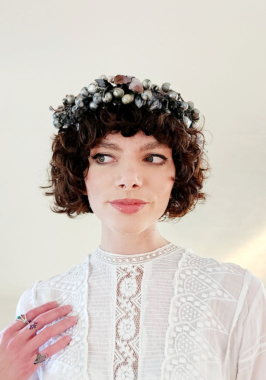 1940s Floral Headband Garland Hat Fascinator Vintage Bridal Headpiece Wedding