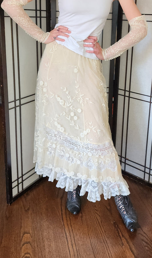 Antique Edwardian Long Cream Lace Skirt AS IS