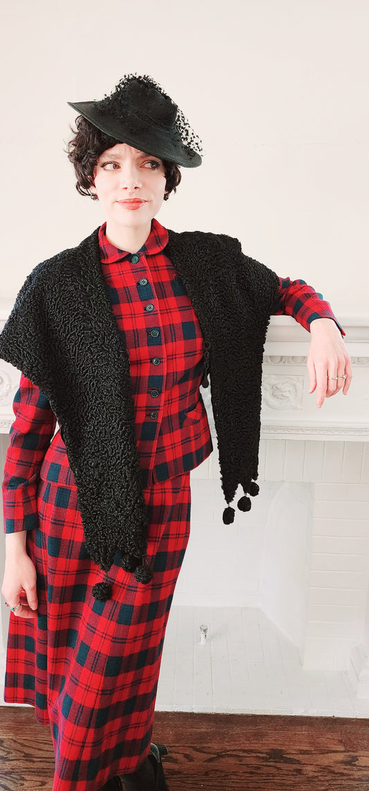 40s Shrug in Black Curly Lamb Persian Wool Wrap Stole by Ferris Bros Furs Chicago
