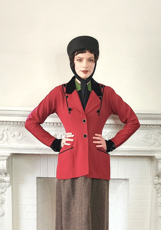 90s Karl Lagerfeld Blazer in Burgundy Red Wool & BLack Velvet 36/Small