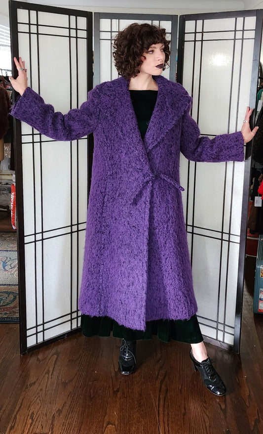 80 Purple Coat by Pauline Trigere Fuzzy Felt Texture - Large