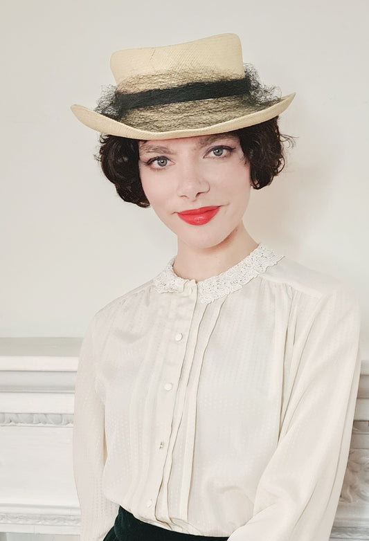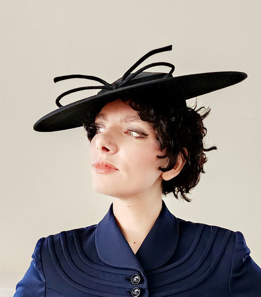 50s Black Platter Hat Midcentury New Look Style Saucer Pancake Bennett's Millinery Evanston