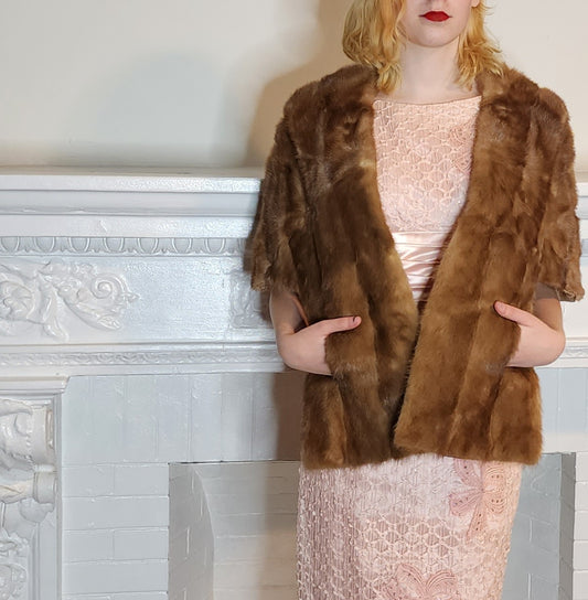 1950s Caramel Brown Mink Stole Wrap Shrug