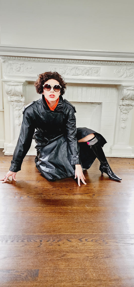 80s Black Leather Coat with Matching Belt Long by Spiegel M