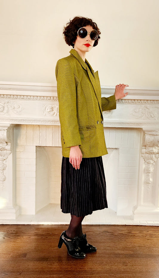 80s Acid Green Blazer with Big Shoulders, Oversized by Together M/L