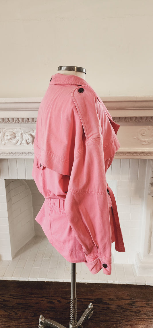 80s 90s Pink Cotton Denim Jacket Hip Length with Matching Belt by Together! Large