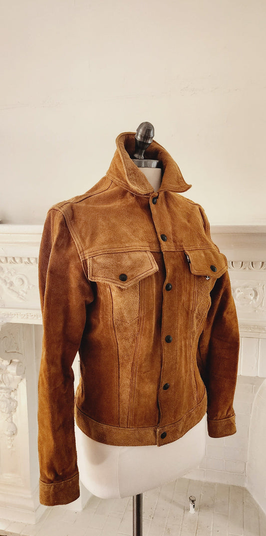60s Levi's Big E Suede Leather Trucker Jacket Western Motorcycle Rocker
