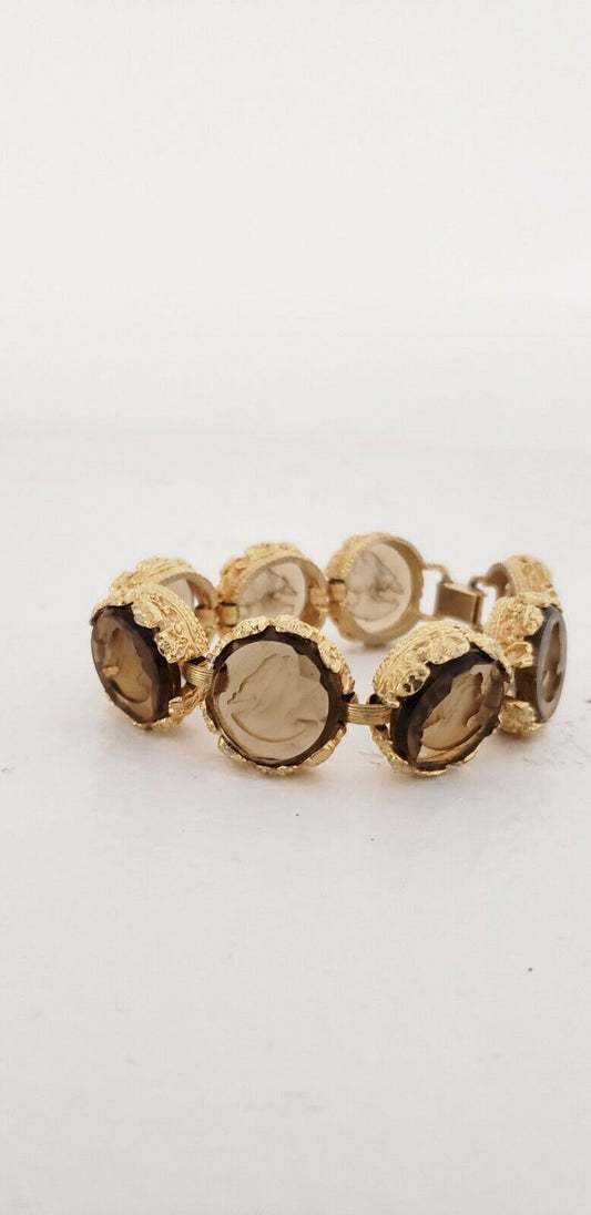 1960s Bracelet in Cut Crystal With Cameo & Hammered Gold Chunky Maximalist Baroque Ornate