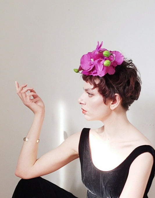 Handmade Floral Fascinator Pink Orchid Flower Hat Headpiece Debra Shirley