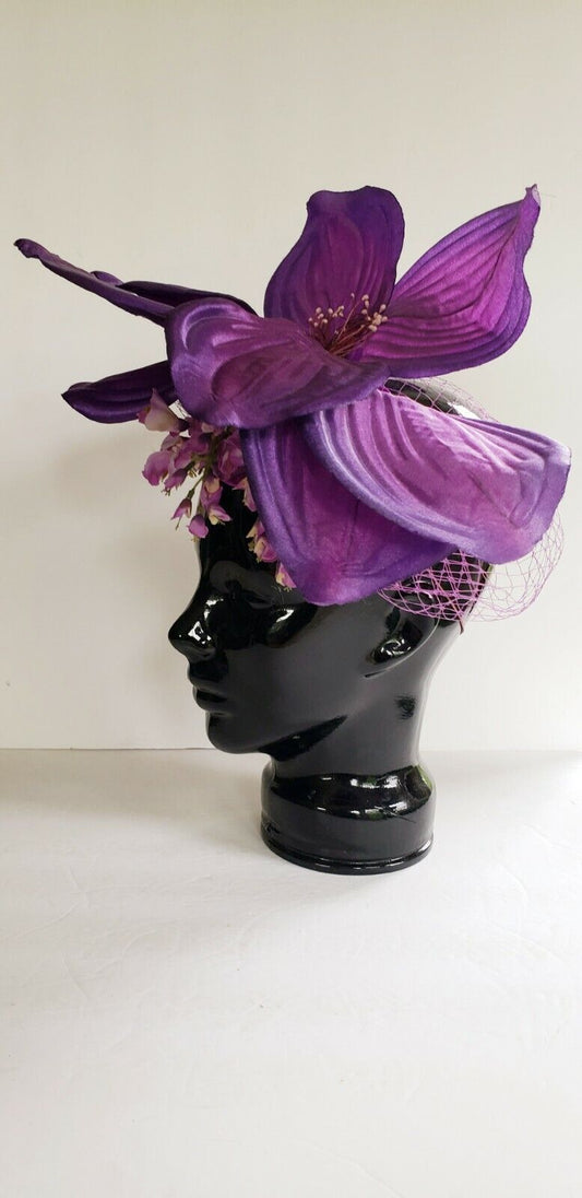 Handmade Floral Fascinator Purple Pink Large Flower Headpiece Artisinal Milliner