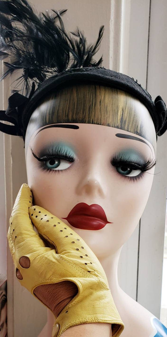 1960s Yellow Leather Kid Gloves Snap Cuff Wrist Closure / 60s Mod European Driving Gloves Perforation US Ladies size 6.5 / Rhoda