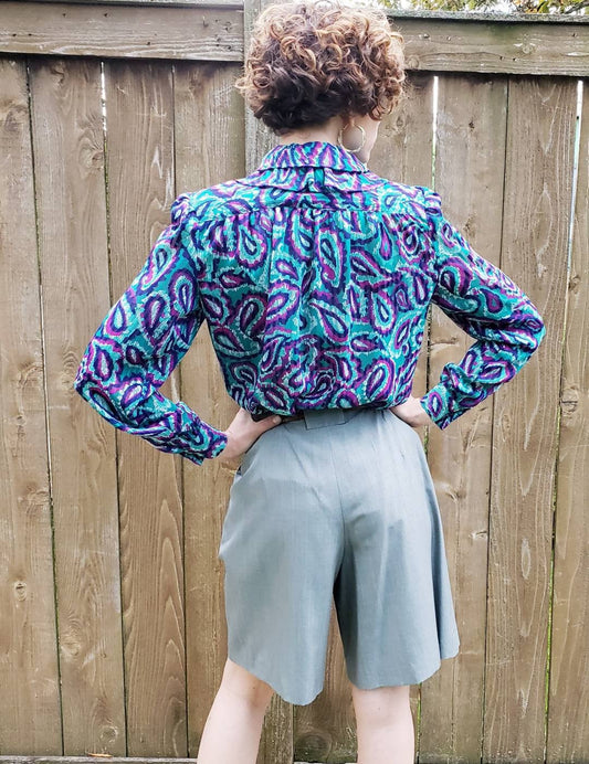 1960s Skort Brown Cream Paisley Pattern / 60s Shorts Skirt Combo High Waisted Four Corners / S