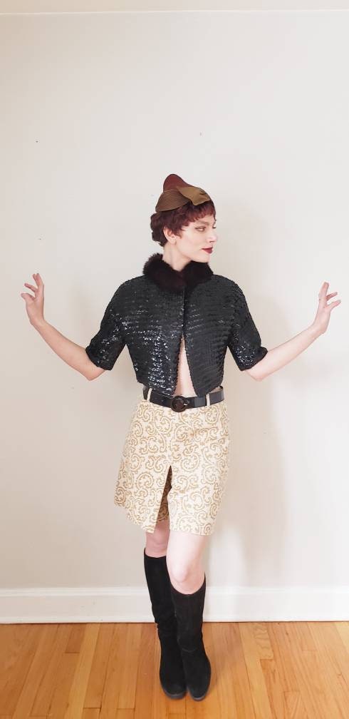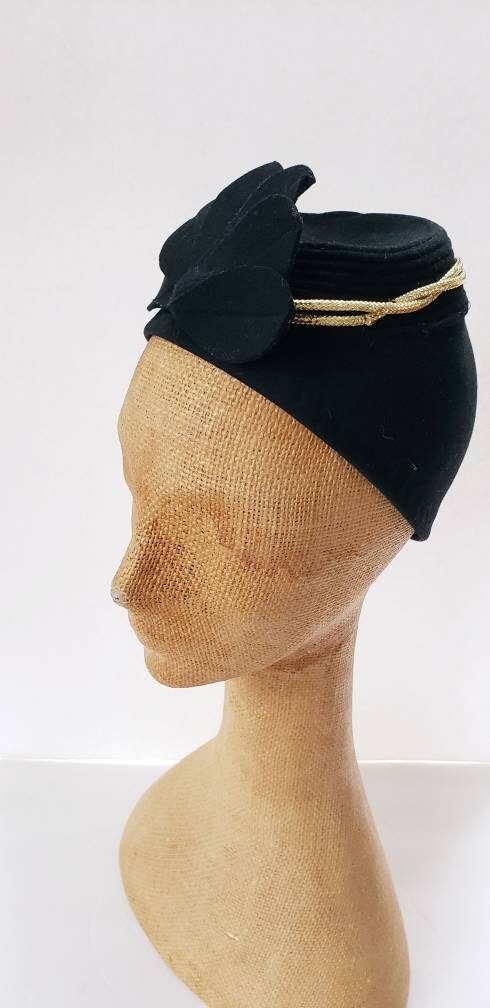 1930s Black Wool Toque Gold Braiding / 30s Art Deco Soft Evening Cocktail Dressy Hat / Erta