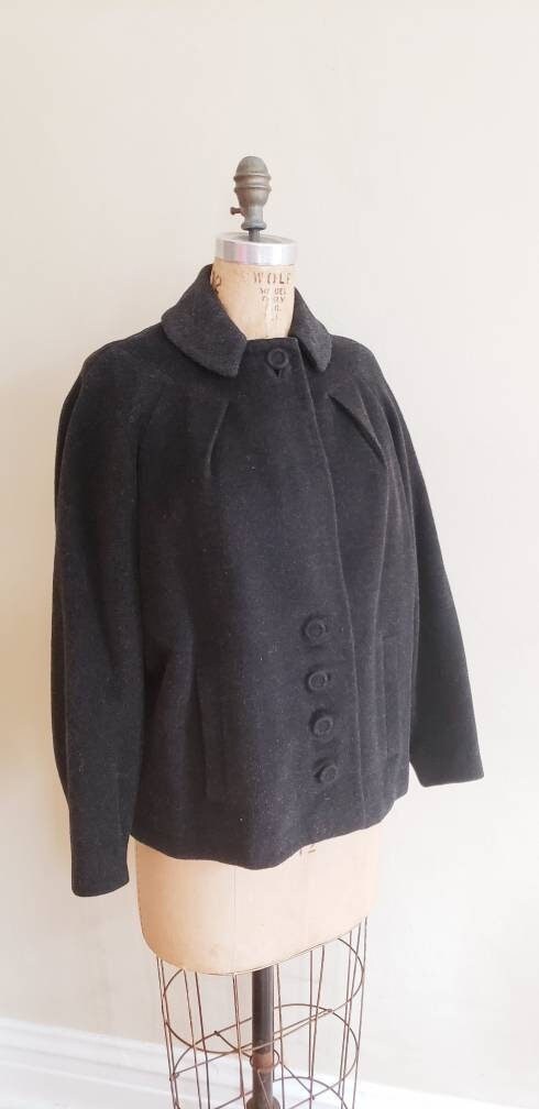 1940s Charcoal Gray Wool Swing Jacket / 40s Button Down Jacket Forstmann Youthmore Original