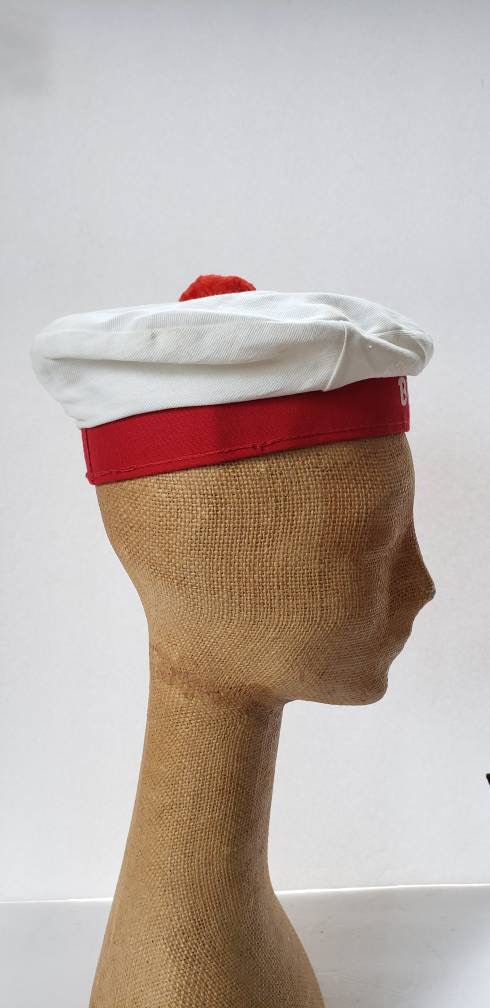 1960s Souvenir Cap Tourist Biscayne Belle Nautical Naval Navy Red and White Tam Beret with Pom-Pom
