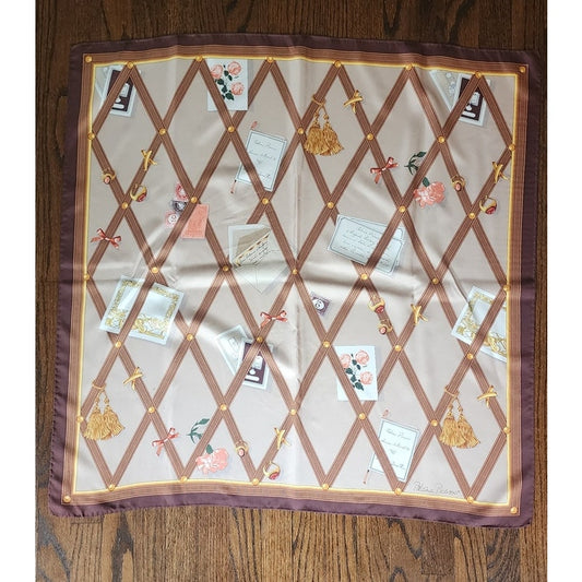 Vintage 90s Paloma Picasso Scarf Silk Brown Beige Novelty Print Bulletin BoardRegular price $50.00 USDRegular priceUnit price per$0.00 USDSale price $50.00 USDSold out