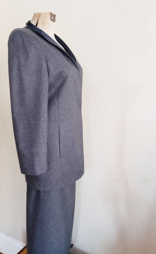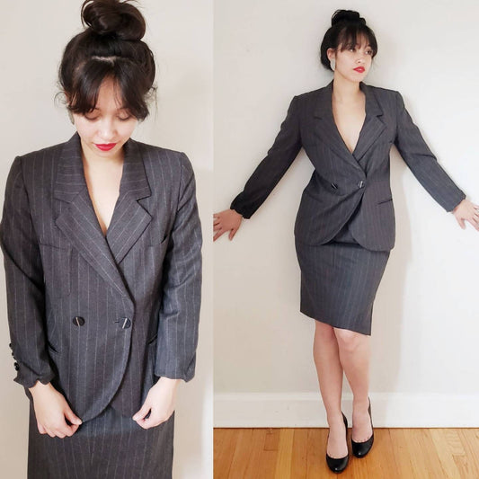 1980s Gray Wool Pinstriped Blazer Louis Feraud 80s Tailored Designer Jacket Minimalist