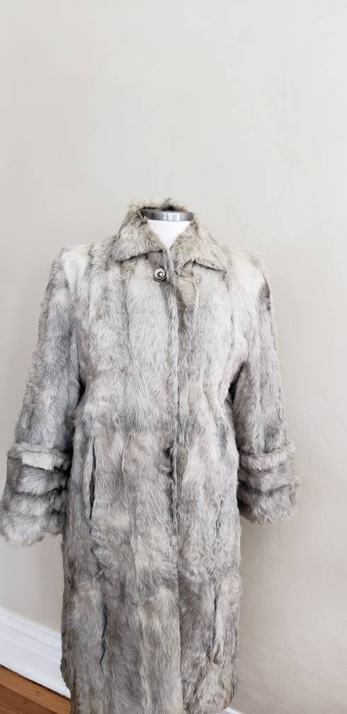1940s Gray Fur Coat Goat Hair / 40s Goat Fur Button Down Swing Coat Zinman Furs / M