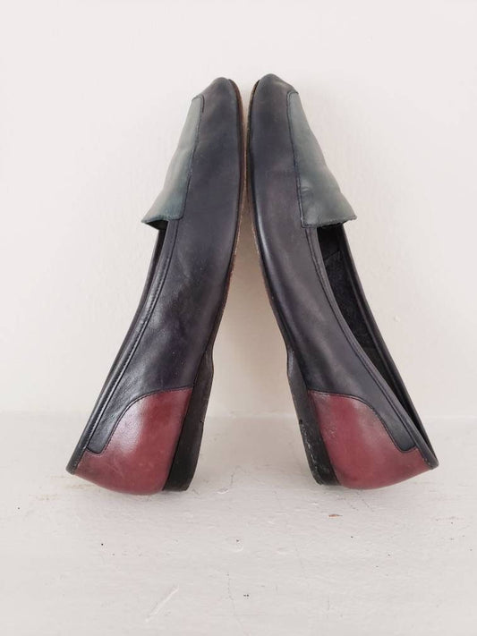 Vintage Green & Oxblood Red Loafers Enzo Angiolini Y2k Minimalist / Ladies Brown Leather Flats Shoes 7.5 / Darya