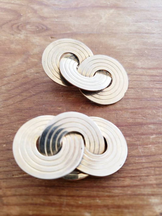 1980s Gold Clip Earrings Interwoven Discs / 80s Chunky Maximalist Clip-Ons Geometric Concentric Circles / Yolanthe