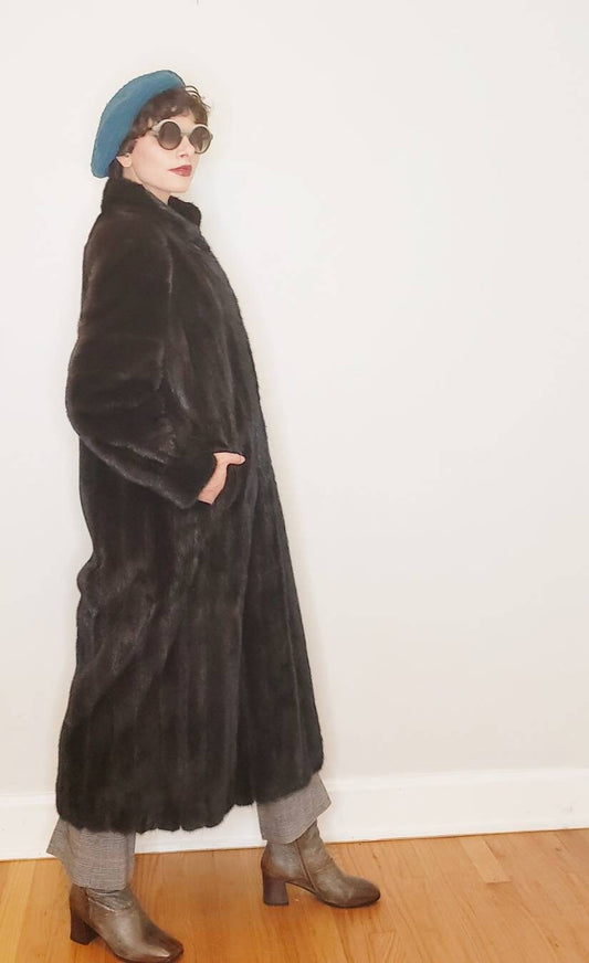 1980s Ranch Mink Fur Coat by Hana K Brown Long