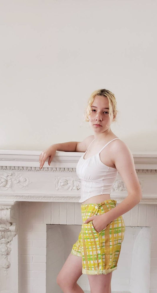 1960s Yellow Plaid Print Shorts / Medium