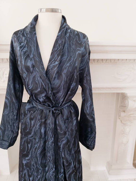 1970s Blue Marble Print Robe Mens Unisex Long Sleeved Botany 500 / Mens Lounging Robe Sash Tie Belt / Small / Chev