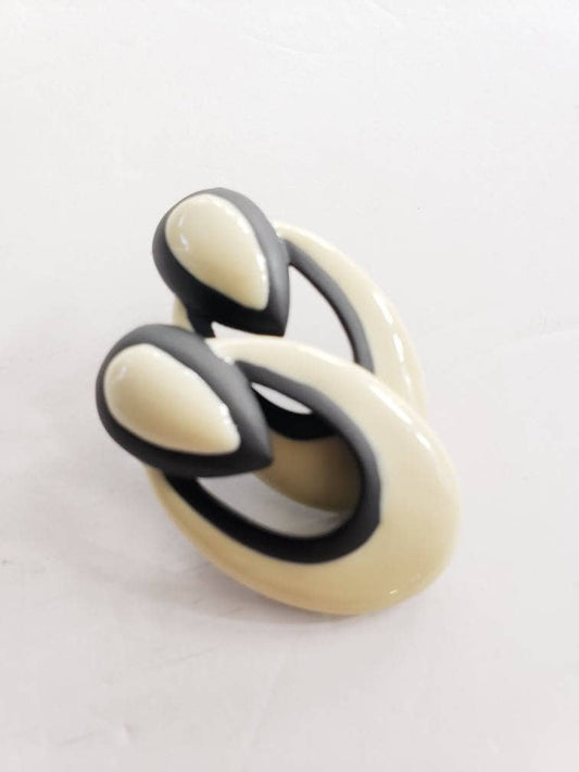 60s Earrings Cream and Black Oval & Teardrop Chunky Enamel Metal / Marcelle