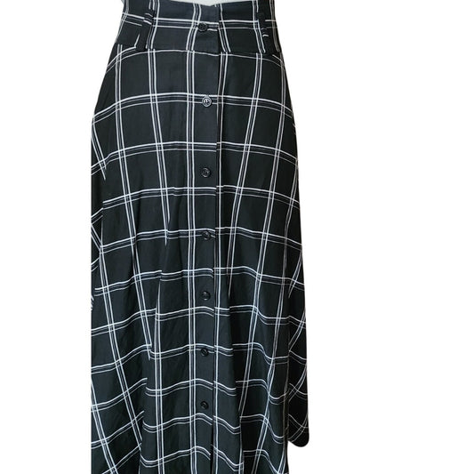 Vintage 90s Anne Klein II Black White Plaid Midi Skirt Linen / M